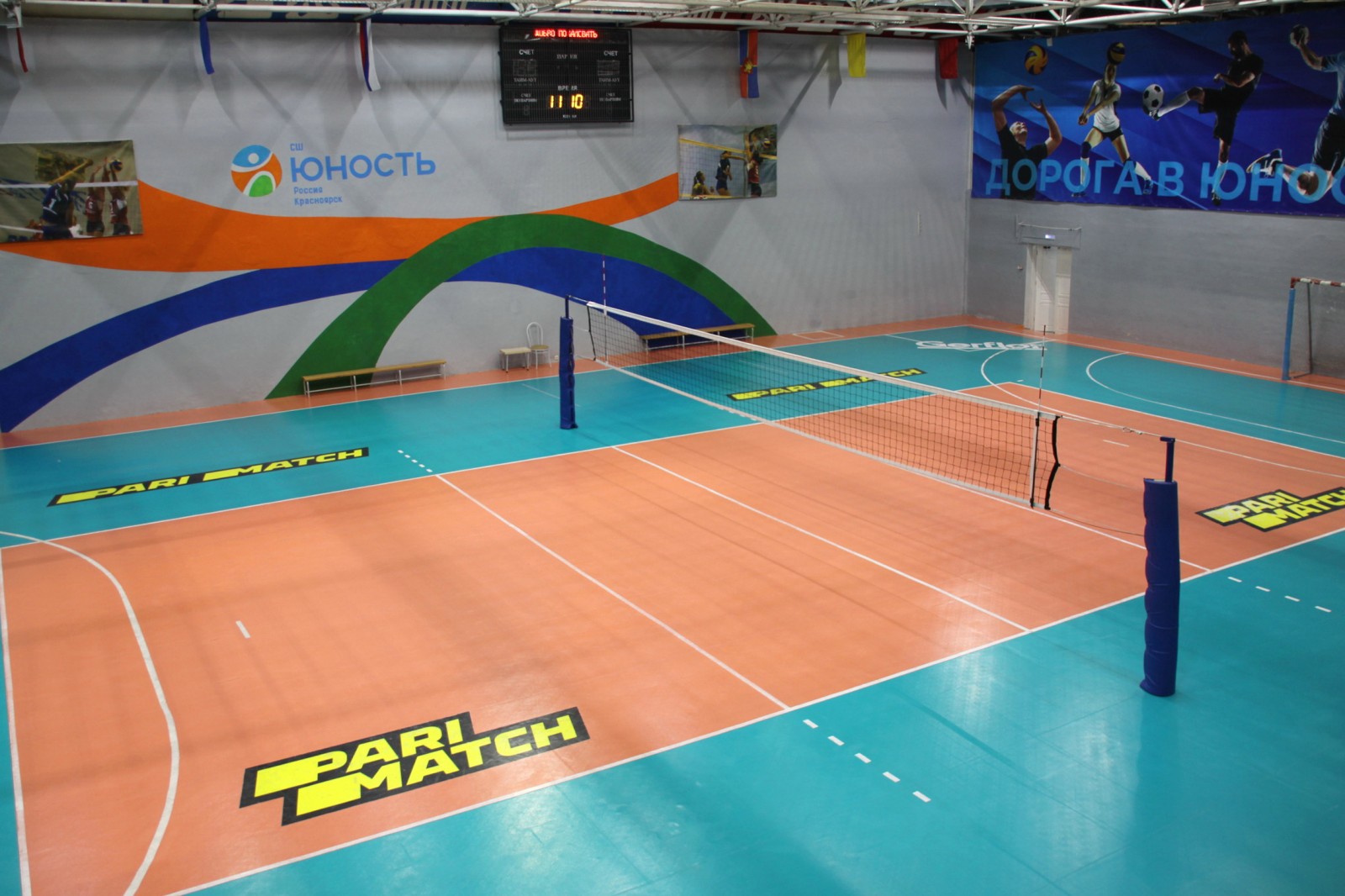 Зал оборудован воротами для игры в футбол и сеткой для игры в волейбол.